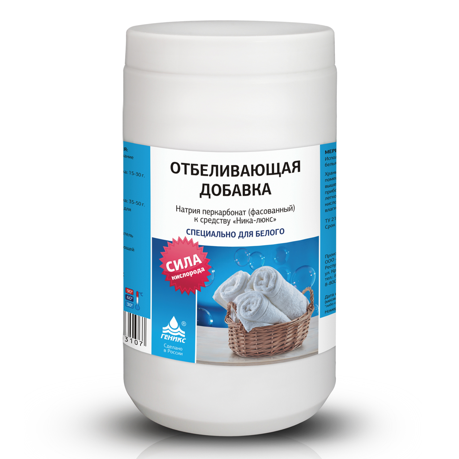 Отбеливающая добавка для Ника-Люкс, натрия перкарбонат 1,2 кг. В случае проблемной стирки рекомендуется использовать отбеливающую добавку Ника-Люкс к моющему средству "Ника-Люкс". В комплексе с моющим средством "Ника-Люкс" легко удаляет жирные пятна, пятна травы, кофе, крови и другие трудно выводимые загрязнения. Средство содержит в себе кислородный отбеливатель. Добавка предназначена только для белого белья!
