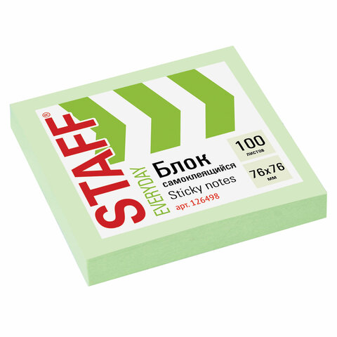 Блок самоклеящ. (стикер) STAFF 76*76мм 100л., зеленый, 126498
