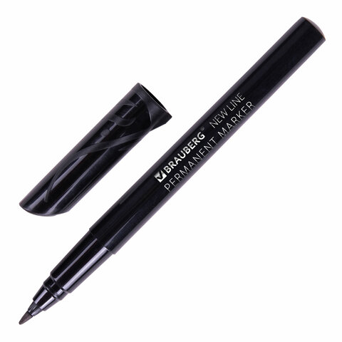 Маркер перманентный BRAUBERG NEW LINE, ЧЕРНЫЙ, круглый наконечник 2мм, 152209