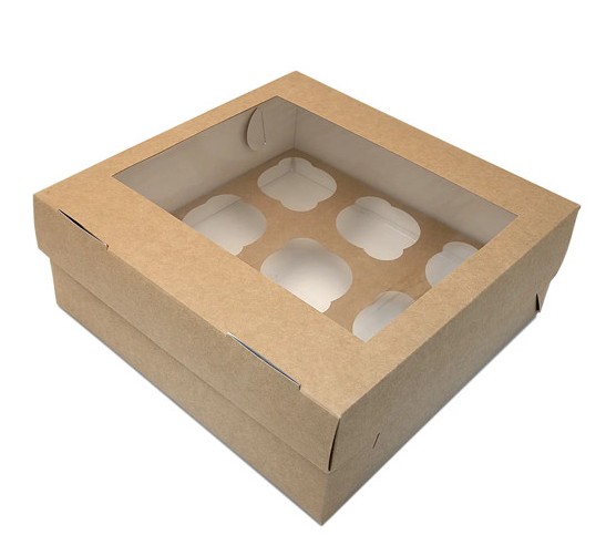 Короб для маффинов (для 9-ти шт.) картон 250*250*100мм (1кор/50 шт) НЕПЛАСТИК 411-027