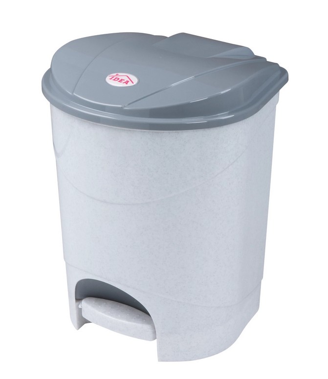 Урна с педалью 14л пласт. квадр., серая + внутр ведро с ручкой