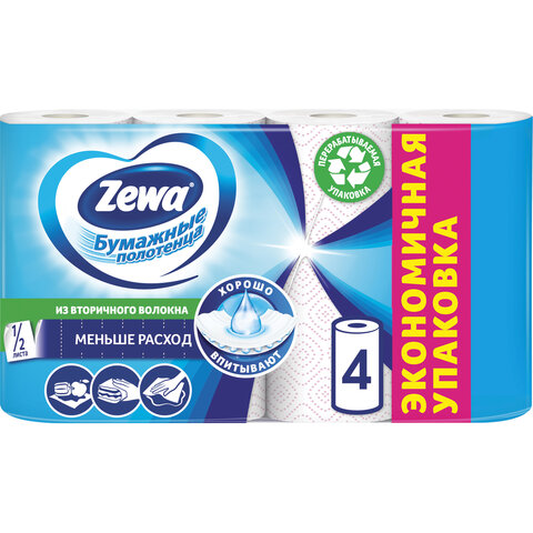 Полотенца бумажные бытовые 2-х слойные, 4 рулона (4х14 м), белые ZEWA 126254