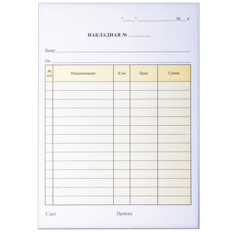 Бланк бух. 2-х слойный самокопирующийся, Накладная, А5 (151х208мм), СПАЙКА 50шт