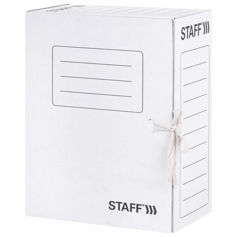 Папка архив. 150мм STAFF (короб) гофрокартон на завязках, белая 1400л 128875