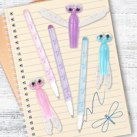 Ручка фигурная шариковая ЮНЛАНДИЯ "Стрекоза", корпус ассорти, СИНЯЯ, узел 0,7мм, 143789