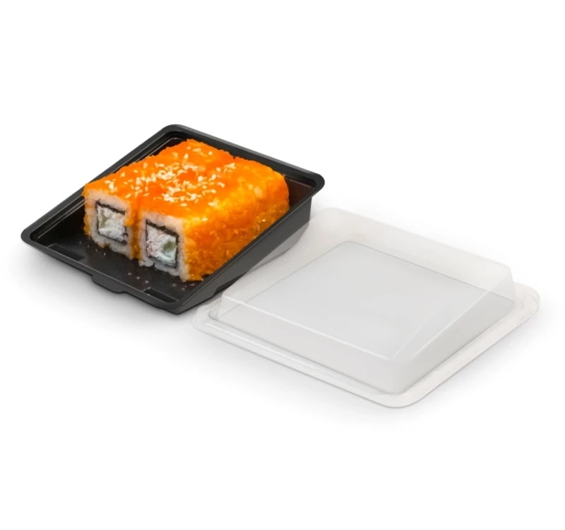 КОМПЛЕКТ Контейнер КД-303Д д/суши дно ЧЕРНЫЙ 1уп/300шт+Крышка КД-303К прозрач 1уп/300шт 1кор/1500шт