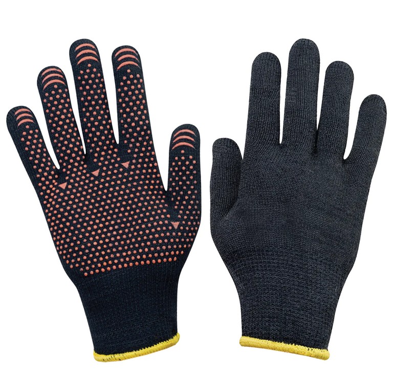 Перчатки хлопок + полиэфир УТЕПЛЕННЫЕ МАХРА, 1пара, 10 класс, 77-80г, разм 9, ПВХ ТОЧКА, утепленные с начесом внутри, СВС, 7.723 черн