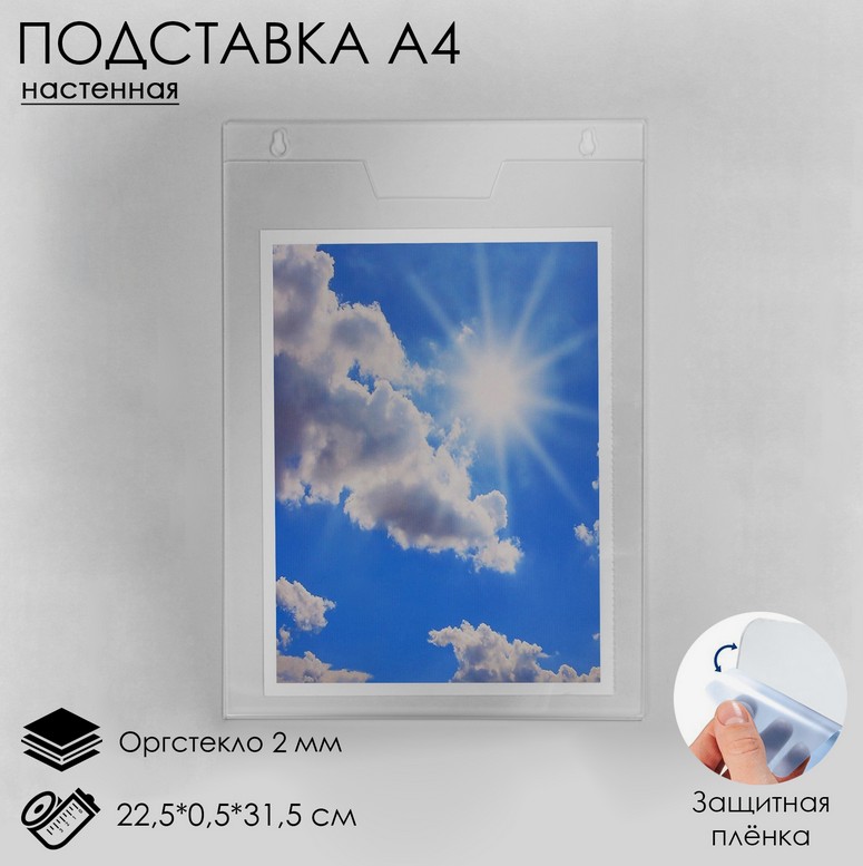 Настенная подставка вертикальная, А4, 22,5*0,5*31,5 см, оргстекло 2мм 1654214