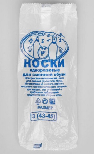 Носки одноразовые для прокатной обуви из НПП, белый, 360*120 мм, спанбонд 17 г./м2, инд уп.