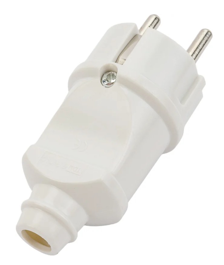 Вилка электр. прямая с заземлением белая 16А 250В