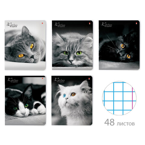 Главная Каталог Товары под заказ Бумага Школьная бумажная продукция Тетради 40-48 листов Тетрадь А5 48 л. АЛЬТ скоба, клетка, глянцевый лак, "Кошки. Яркий взгляд" (5 видов), 7-48-1019