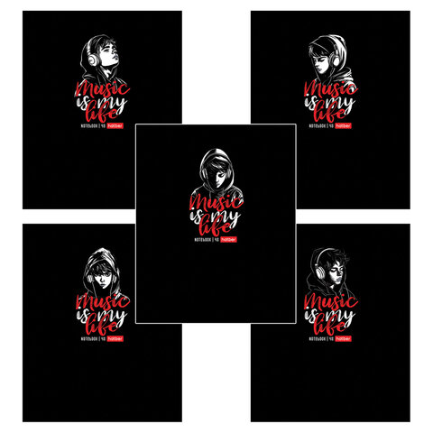 Тетрадь А5 48 л. HATBER скоба, клетка, выборочный лак, "Music is my life" (микс в спайке), 091471, 48Т5вмВ1