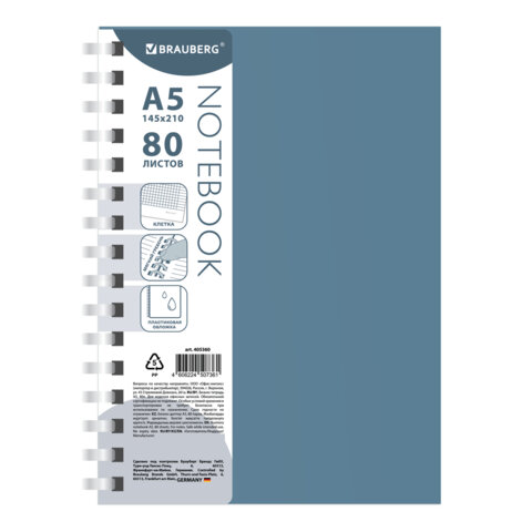 Главная Каталог Товары под заказ Бумага Школьная бумажная продукция Тетради более 60 листов Тетрадь обложка пластик, А5 80л. гребень мягкий (силиконовый), клетка, BRAUBERG, синий, 405360