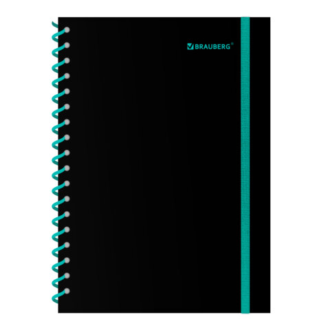Тетрадь обложка пластик, А5 80л. спираль пластик, резинка, клетка, BRAUBERG, черный/синий, 405385