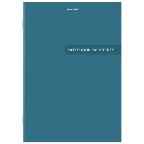 Тетрадь А4, 96 л., ОФИСМАГ скоба, клетка, обложка картон, СИНЯЯ, 405637