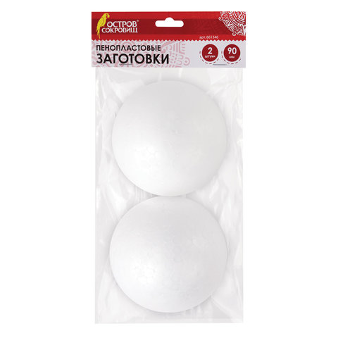 Пенопластовые заготовки для творчества "Шарики", 2 шт., 90 мм, ОСТРОВ СОКРОВИЩ, 661346
