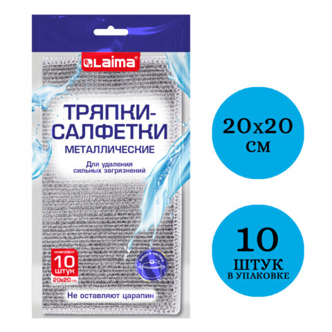 Тряпки салфетки металлизированный эффект скрабер 20 х 20 см КОМПЛЕКТ 10 штук, посуда, уборка, LAIMA, 700065