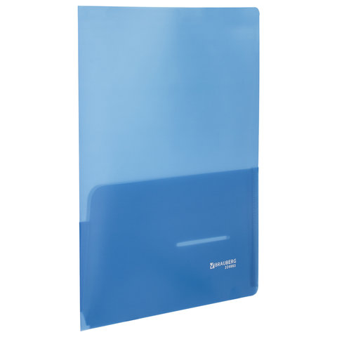 Папка-уголок с 2 карманами BRAUBERG, синяя, 0,18 мм, 224883