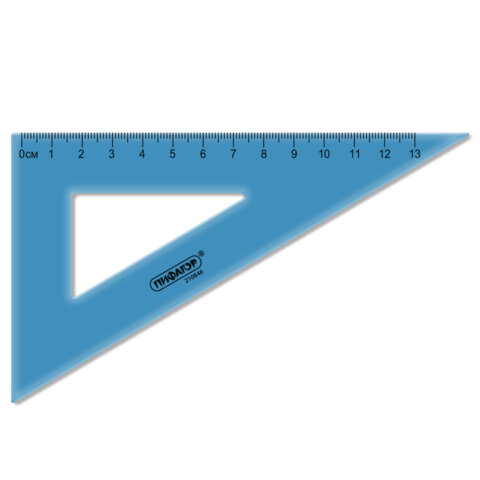 Прозрачный треугольник ПИФАГОР незаменим для чертёжных и измерительных работ. Изготовлен из прочного тонированного пластика толщиной 1,7 мм. Длина шкалы - 13 см, углы - 30° и 60°. Обладает четкой контрастной печатной разметкой. Размер - 8 х 14 см. Цвет треугольника - синий. Поставляется без упаковки.