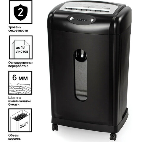 Уничтожитель (шредер) BRAUBERG S18-S, БЕСШУМНЫЙ, 2 уровень секретности, полоски 6 мм,18 листов, 28 л, 530961