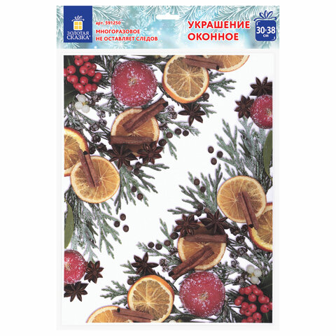 Украшение для окон и стекла ЗОЛОТАЯ СКАЗКА - это отличный и недорогой способ украсить домашний или офисный интерьер к новогодним праздникам. Такой декор наполнит комнату волшебной атмосферой и подарит праздничное настроение. Изделие с новогодним тематическим изображением представляет собой наклейку на окно/стекло, изготовленную из поливинилхлорида (ПВХ). Наклейка размером 30x38 см декорирована разноцветным глиттером. Украшение предназначено для декорирования окон, зеркал, стекол и других ламинированных глянцевых поверхностей. Не оставляет клеевых следов и предназначено для многократного использования. Крепится к поверхности посредством статического эффекта. Украшение на белой картонной подложке упаковано в прозрачный полипропиленовый пакет на картонном подвесе.