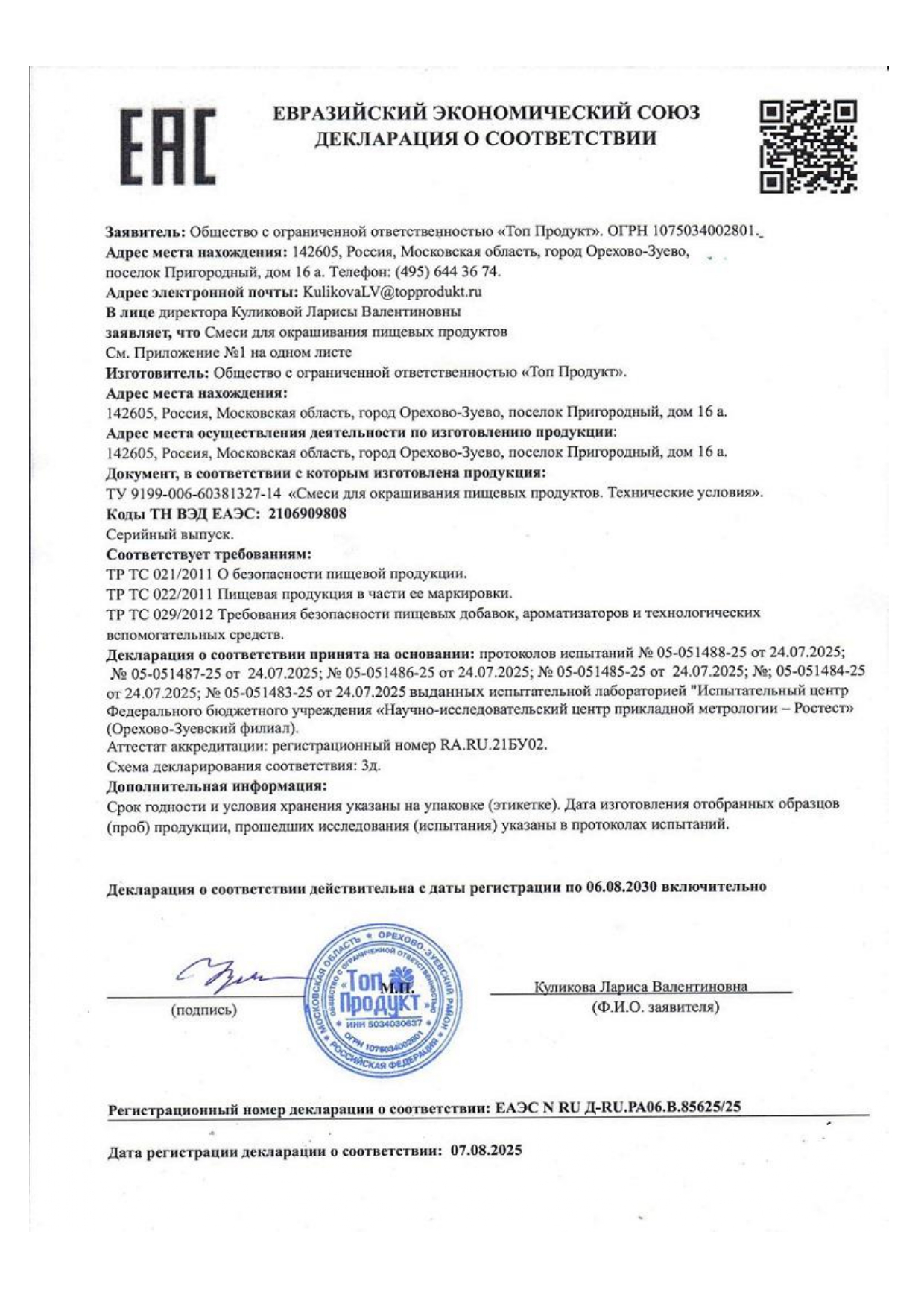 1. смеси для окрашивания пищевых продуктов сухие в цветах "Красный", "Синий", Желтый, "Оранжевый", "Фиолетовый", "Бирюзовый";