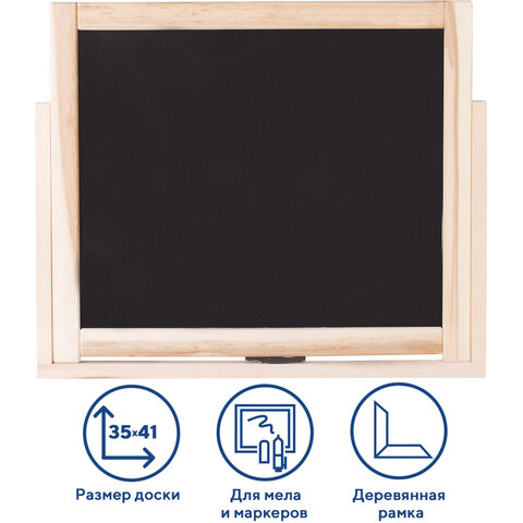 Доска двустороняя для мела и маркеров (35х41 см), настольная, подставка, черная/белая, ПИФАГОР, 236888