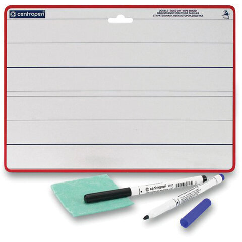 Доска двусторонняя маркерная А4 (297х210 мм), БЕЛАЯ/ЛИНИЯ, 2 маркера + салфетка, CENTROPEN, 7719, 5 7719 0201