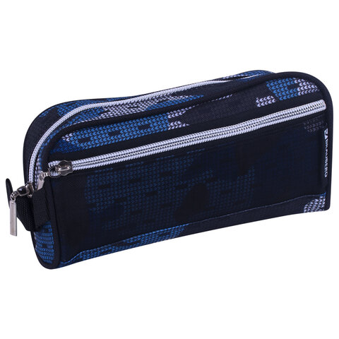Пенал-косметичка BRAUBERG с ручкой, карман из сетки, полиэстер, "Storm", 20х6х9 см, 229275