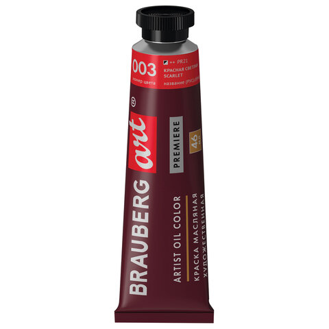 Краска масляная художественная BRAUBERG ART PREMIERE, 46 мл, проф. серия, КРАСНАЯ СВЕТЛАЯ, 191407