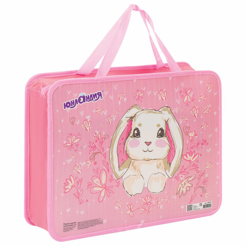 Папка на молнии с ручками ЮНЛАНДИЯ А4, 1 отделение, пластик, ширина 80 мм, "Bunny", 228174